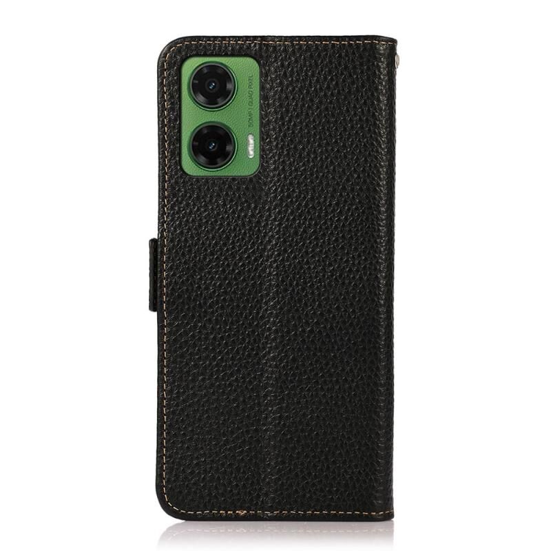Θήκη τηλεφώνου Motorola Moto G35 KHAZNEH με μαγνητικό κλείσιμο, από γνήσιο δέρμα Litchi και προστασία RFID (Μαύρο)