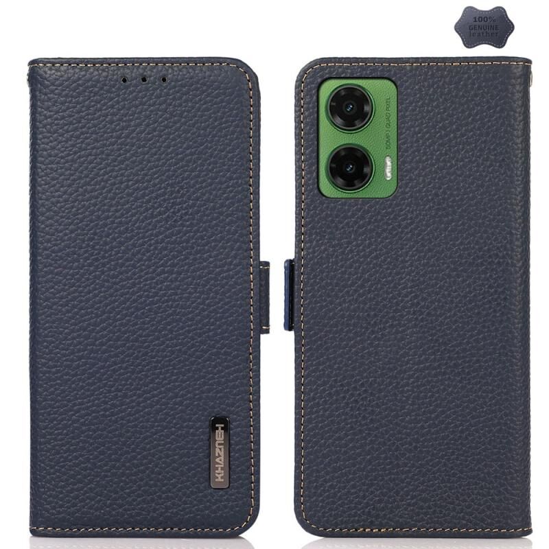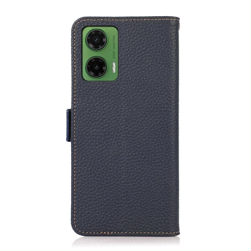 Θήκη τηλεφώνου Motorola Moto G35 KHAZNEH με μαγνητικό κλείσιμο, από γνήσιο δέρμα Litchi και προστασία RFID (Μαύρο)