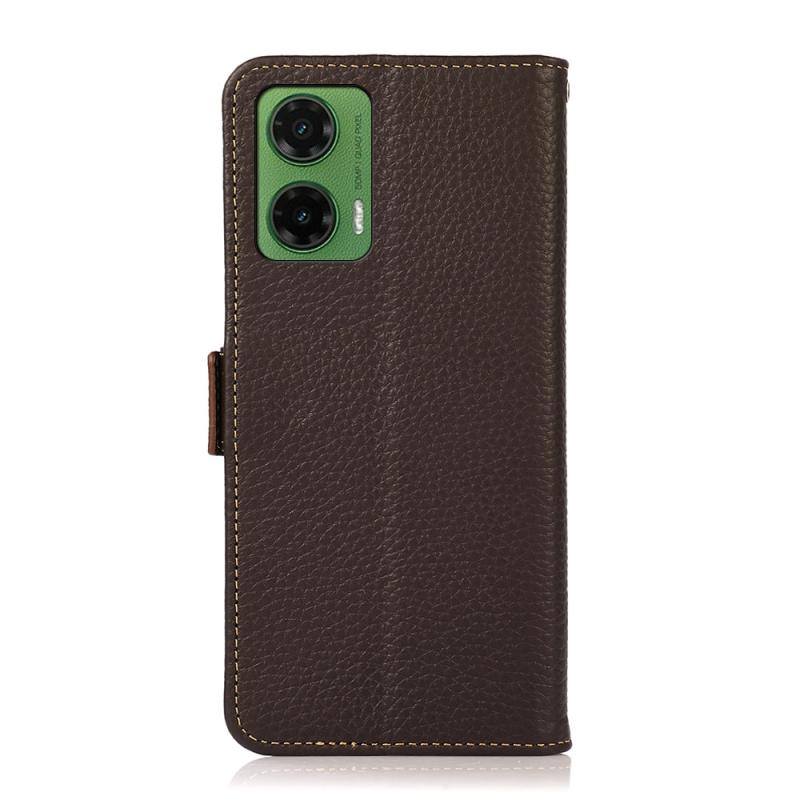 For Motorola Moto G35 KHAZNEH Side-Magnetic Litchi Genuine Leather RFID Phone Case(Brown)