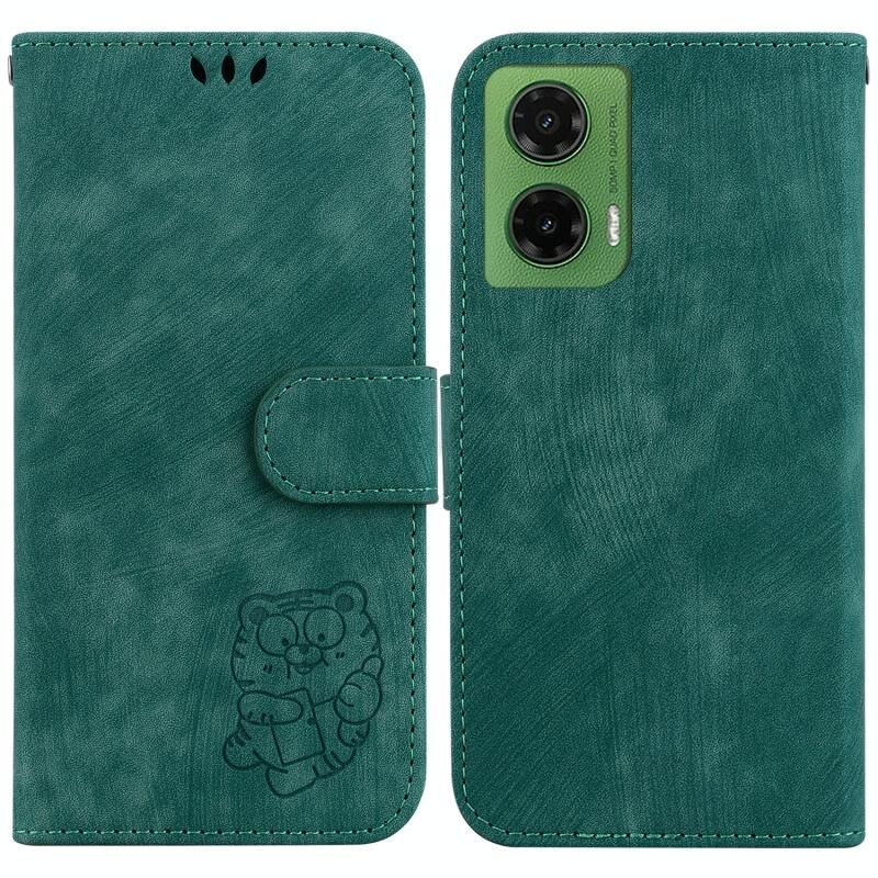 Θήκη τηλεφώνου από ανάγλυφο δέρμα για Motorola Moto G35 Little Tiger (Πράσινο)