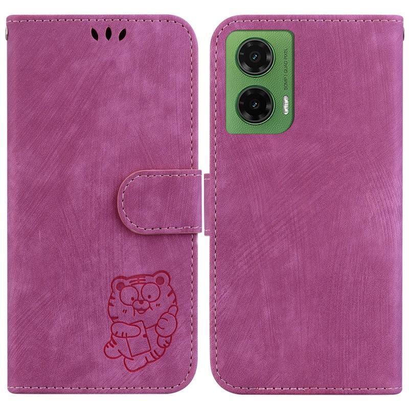 Θήκη τηλεφώνου από ανάγλυφο δέρμα για Motorola Moto G35 Little Tiger (Πράσινο)