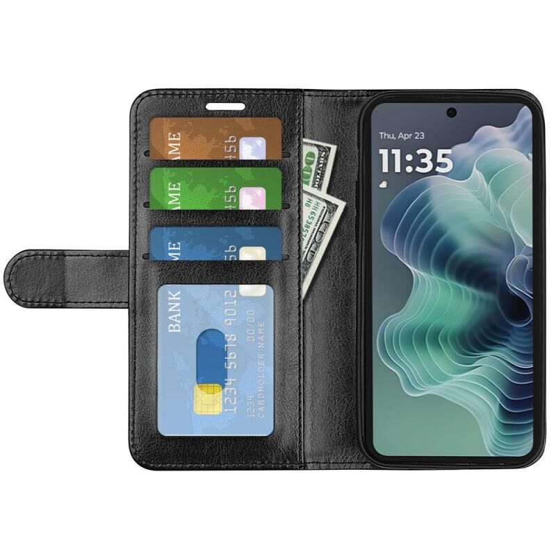 Θήκη τηλεφώνου δερμάτινη οριζόντιας αναδίπλωσης για Motorola Moto G35 R64 (Μαύρο)