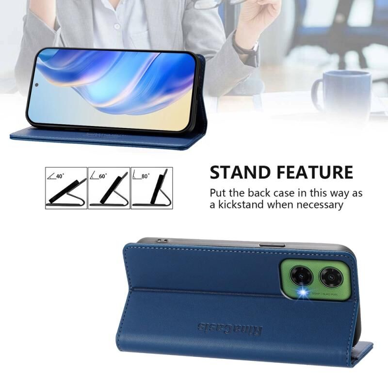 Θήκη τηλεφώνου δέρματινη με μαγνητική απορρόφηση και διπλή πτύχωση για Motorola Moto G35 RC01 (Σκούρο μπλε)
