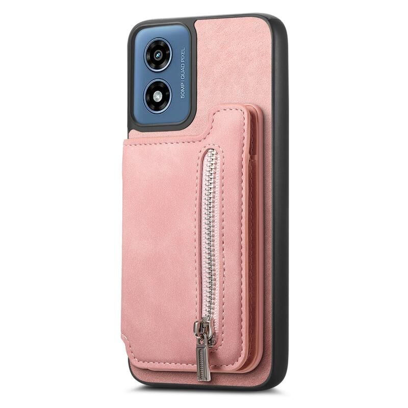 Για Motorola Moto G35 Retro MagSafe Θήκη Τηλεφώνου με Φερμουάρ και Θήκη Κάρτας (Μπλε)