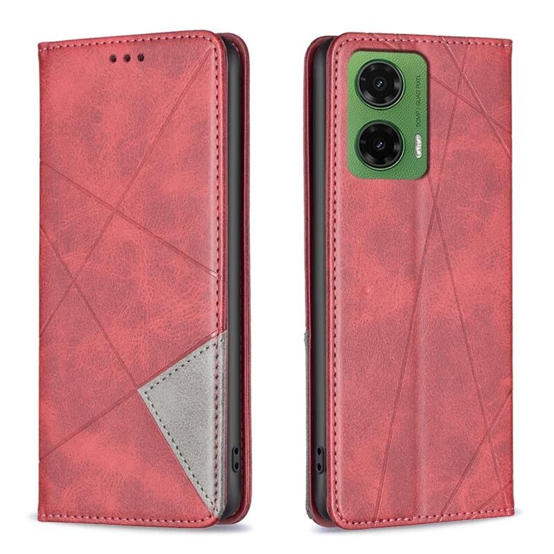 Για Motorola Moto G35 Rhombus Texture μαγνητική δερμάτινη θήκη τηλεφώνου (κόκκινο)