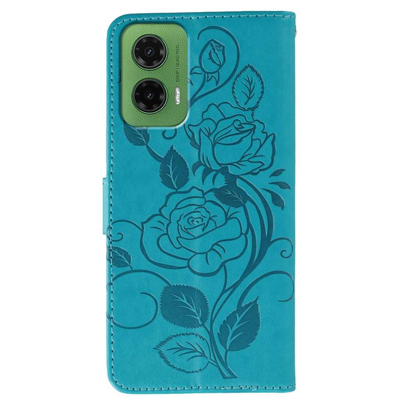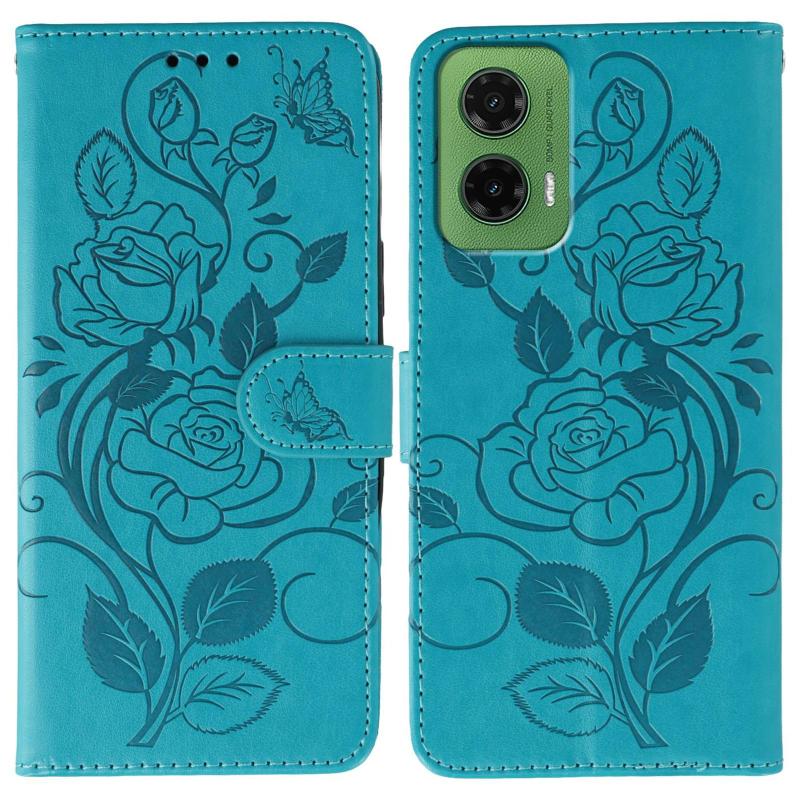 Θήκη τηλεφώνου δερμάτινη ανάγλυφη για Motorola Moto G35 Rose Butterfly (Μπλε)