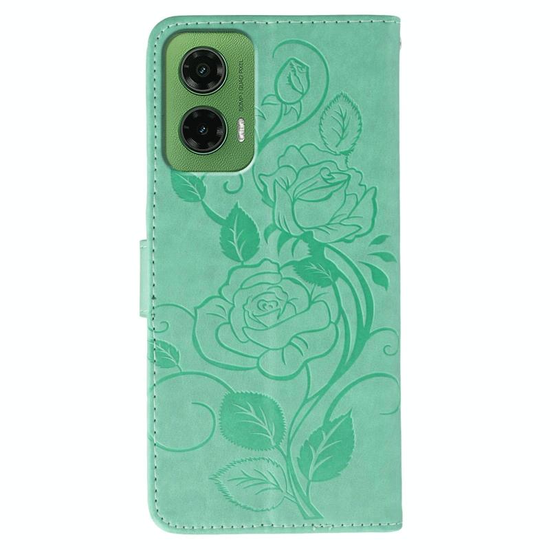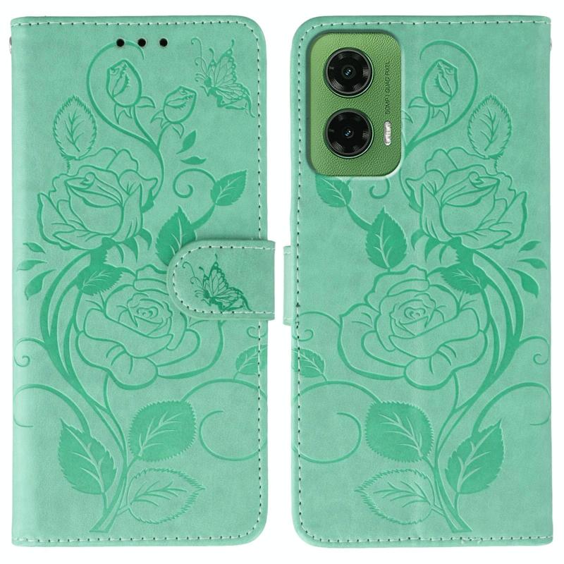 For Motorola Moto G35 Rose Butterfly Embossed Leather Phone Case(Green)