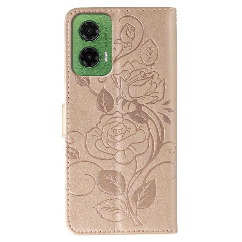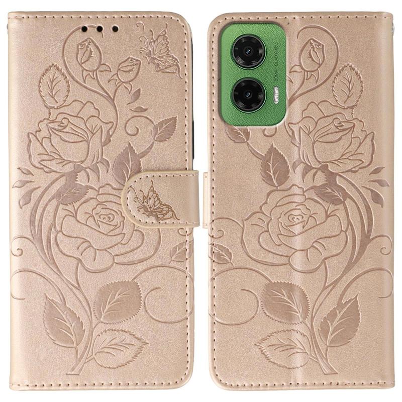 For Motorola Moto G35 Rose Butterfly Embossed Leather Phone Case(Rose Gold)