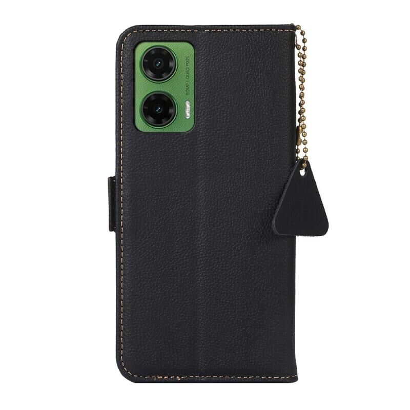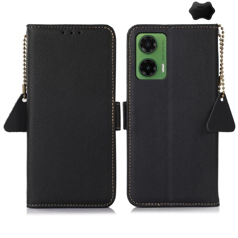 Θήκη τηλεφώνου Motorola Moto G35 Side-Magnetic TJ από γνήσιο δέρμα με προστασία RFID (Μαύρο)