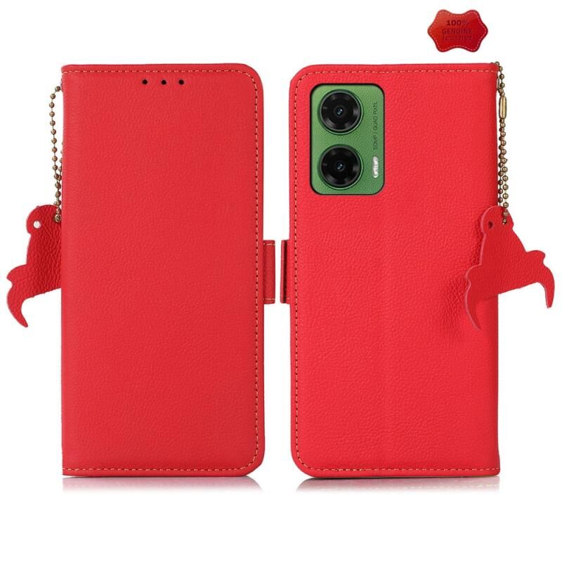 Θήκη τηλεφώνου Motorola Moto G35 Side-Magnetic TJ από γνήσιο δέρμα με προστασία RFID (Κόκκινη)