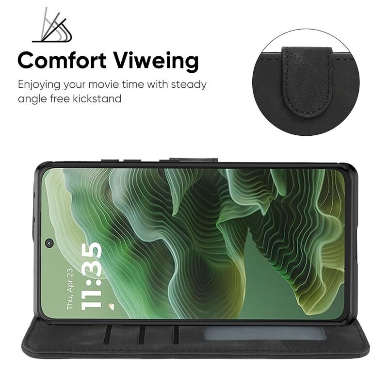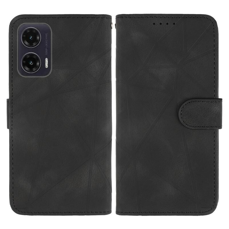 Για Motorola Moto G35 Skin Feel γεωμετρικές γραμμές δερμάτινη θήκη τηλεφώνου (μαύρο)
