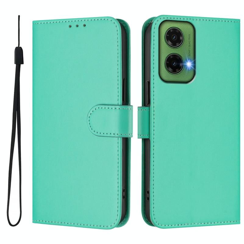Για το Motorola Moto G35 Skin Feel Solid Color δερμάτινη θήκη τηλεφώνου με κορδόνι (πράσινο)