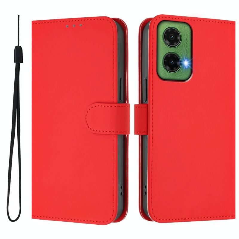 Για το Motorola Moto G35 Skin Feel Solid Color Δερμάτινη θήκη τηλεφώνου με κορδόνι (κόκκινο)