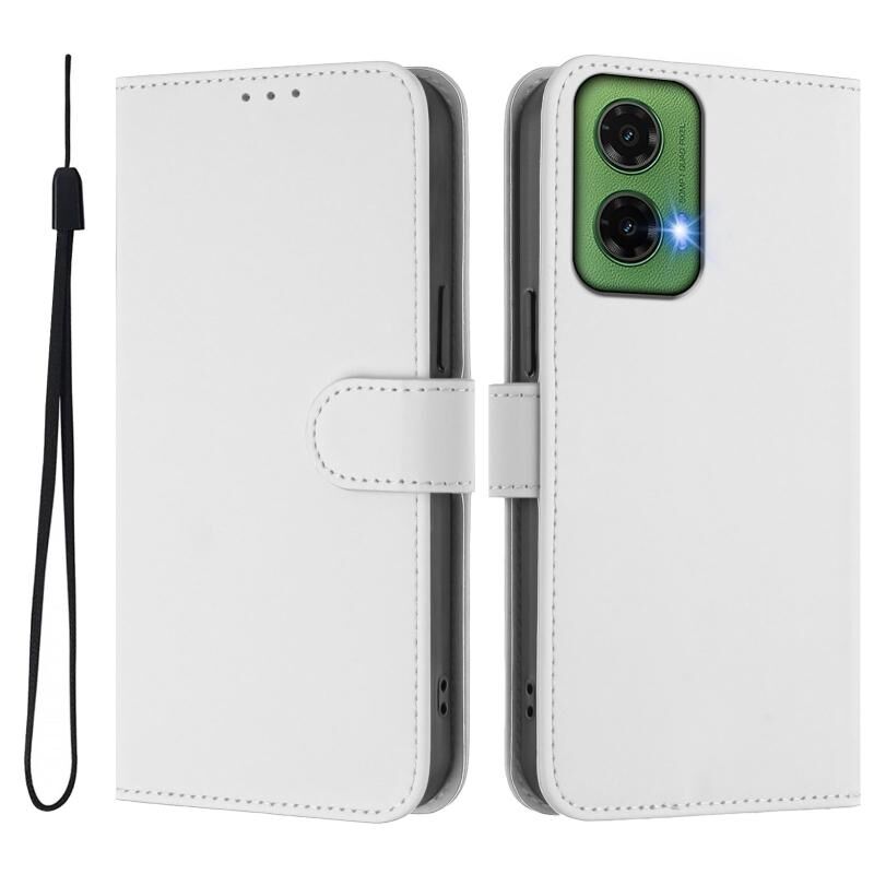 Για το Motorola Moto G35 Skin Feel Solid Color δερμάτινη θήκη τηλεφώνου με κορδόνι (λευκό)
