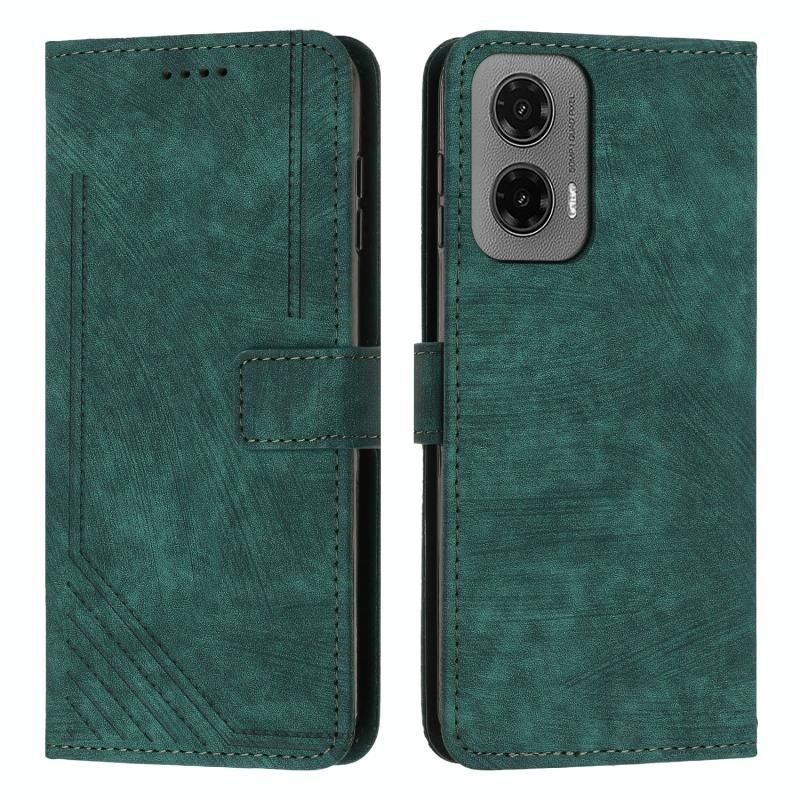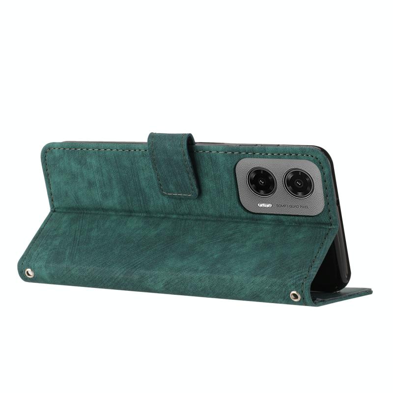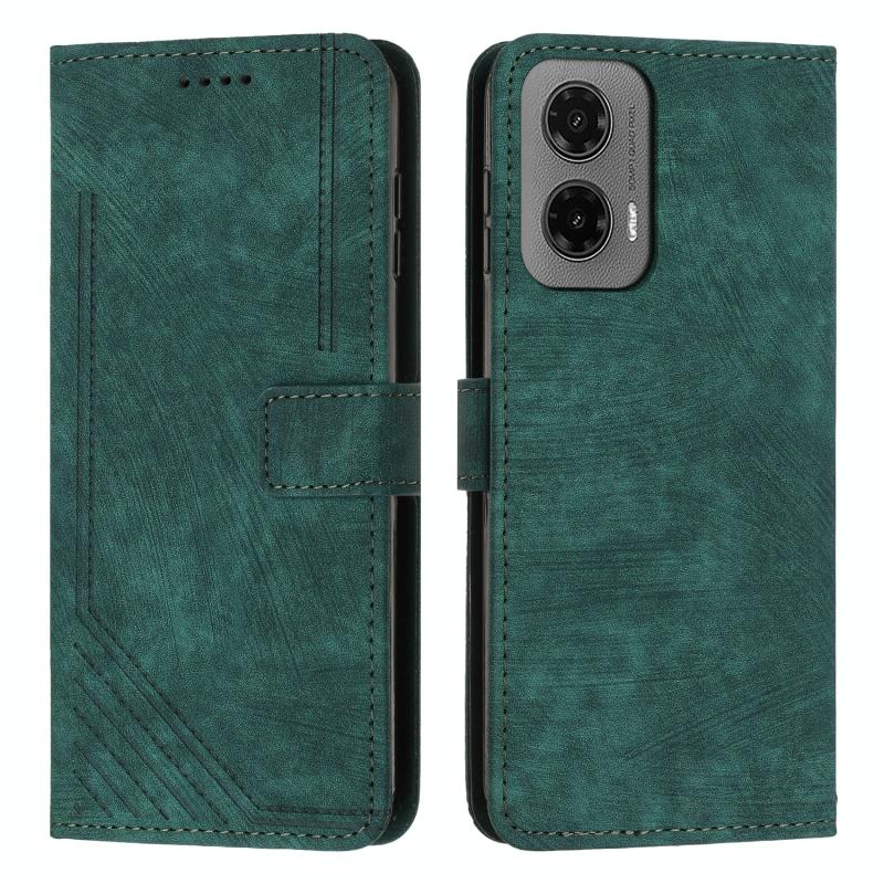 For Motorola Moto G35 Skin Feel Stripe Pattern Leather Phone Case with Lanyard(Green)