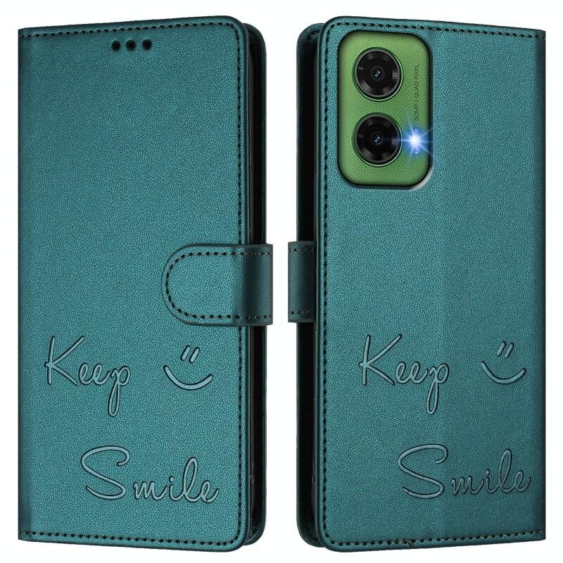 Θήκη τηλεφώνου δερμάτινη με ανάγλυφο χαμόγελο RFID για Motorola Moto G35 (Μέντας Πράσινο)