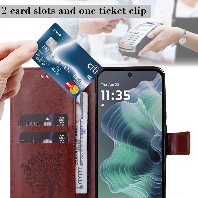 4. Λειτουργία Πορτοφολιού: Η δερμάτινη θήκη είναι εξοπλισμένη με υποδοχές καρτών για την τοποθέτηση καρτών και ενός μικρού ποσού μετρητών.