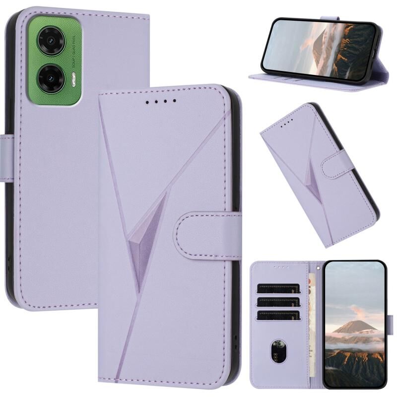 Για Motorola Moto G35 Τρίγωνο μοτίβο αγκράφα κούμπωμα δερμάτινη θήκη τηλεφώνου (Light Purple)