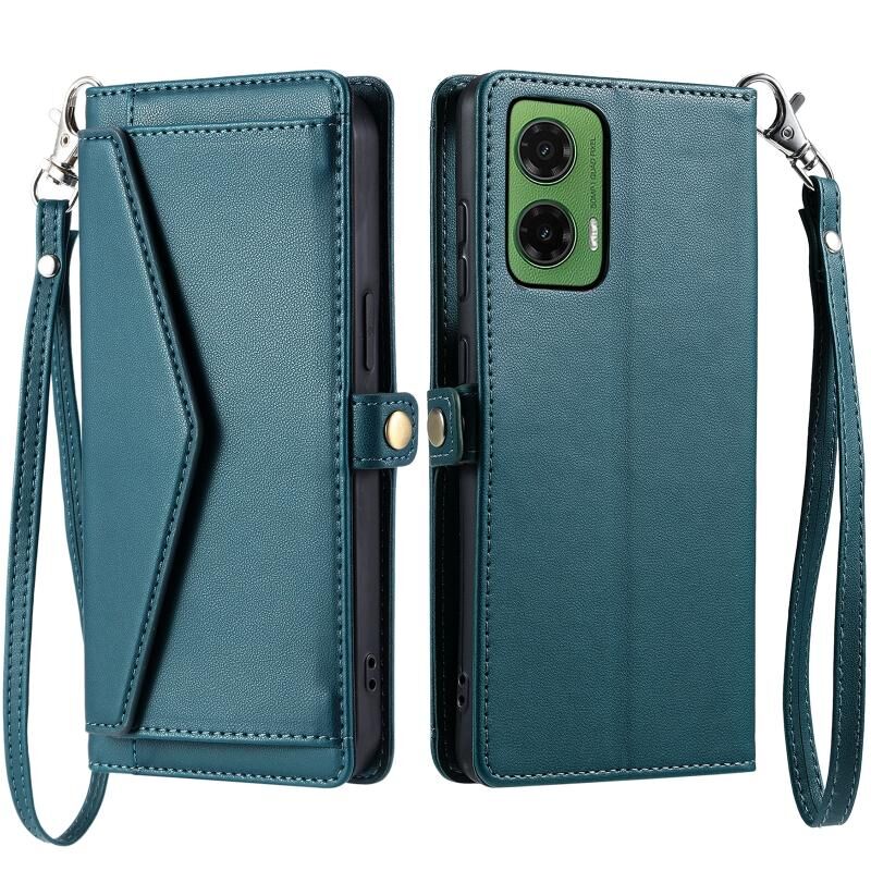 Για Motorola Moto G35 Πορτοφόλι Υποδοχή πολλαπλών καρτών Δερμάτινη θήκη τηλεφώνου με κορδόνι (πράσινο)