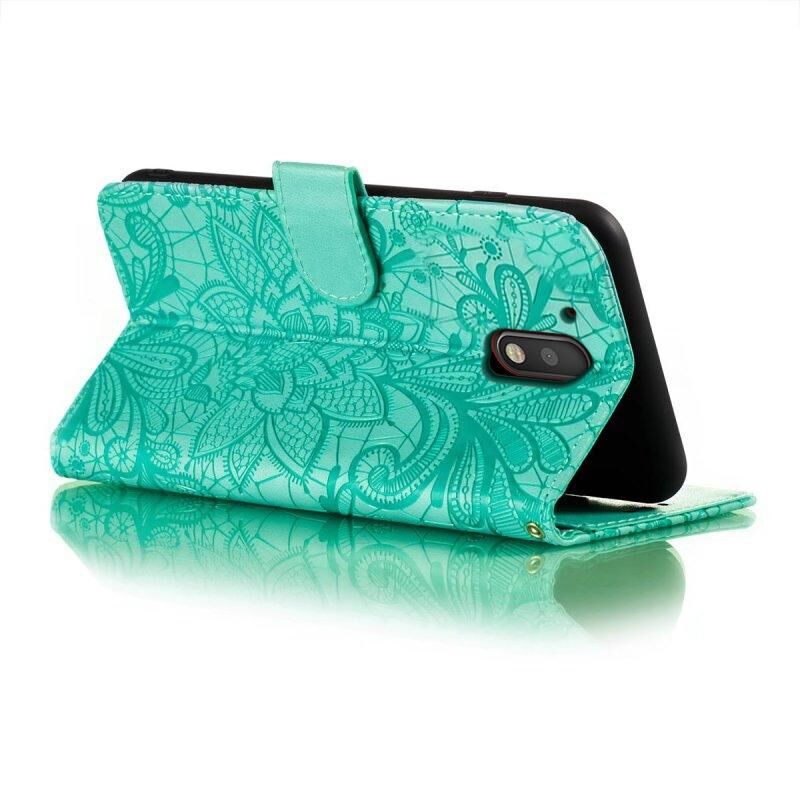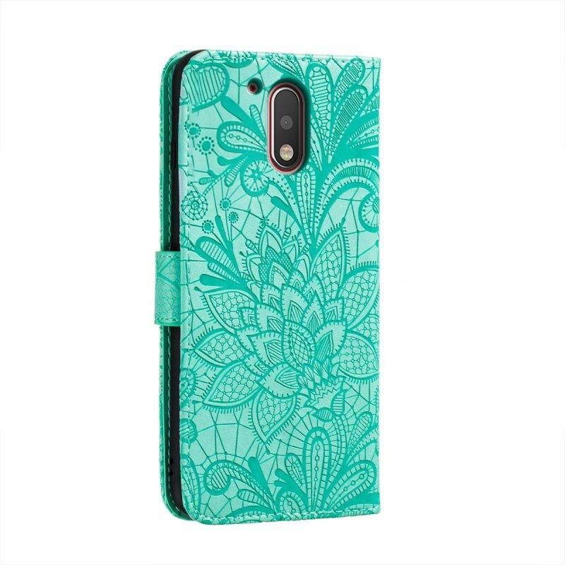 Για Motorola Moto G4 Lace λουλούδι ανάγλυφο Flip δέρμα τηλέφωνο υπόθεση (πράσινο)