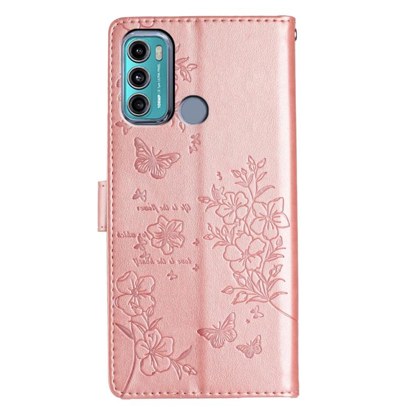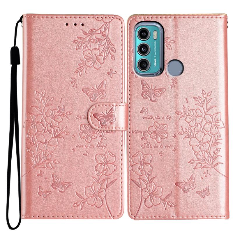Θήκη τηλεφώνου δερμάτινη για Motorola Moto G40 Fusion με σχέδια πεταλούδες και λουλούδια (Χρυσό)