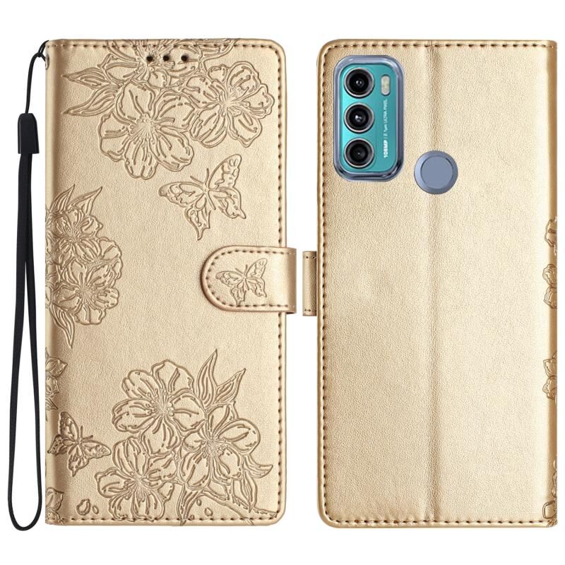 Θήκη κινητού τηλεφώνου Motorola Moto G40 Fusion Cherry Blossom Butterfly Skin Feel Embossed PU (Κόκκινη)
