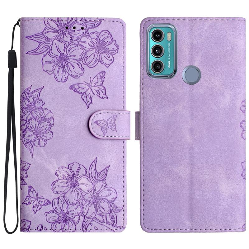 For Motorola Moto G40 Fusion Cherry Blossom Butterfly Skin Feel Embossed PU Phone Case(Purple)