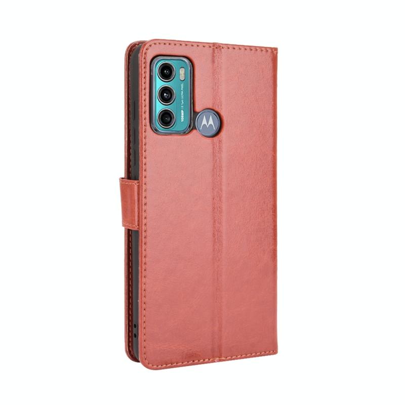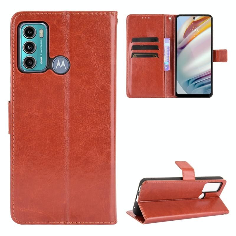 Θήκη δέρματος οριζόντιας αναδίπλωσης με υφή Crazy Horse για Motorola Moto G40 Fusion / Moto G60 με βάση & υποδοχές καρτών & κορδόνι (Χρυσό)