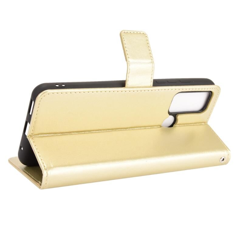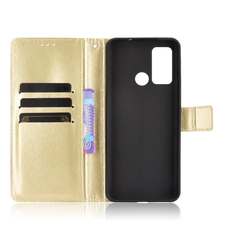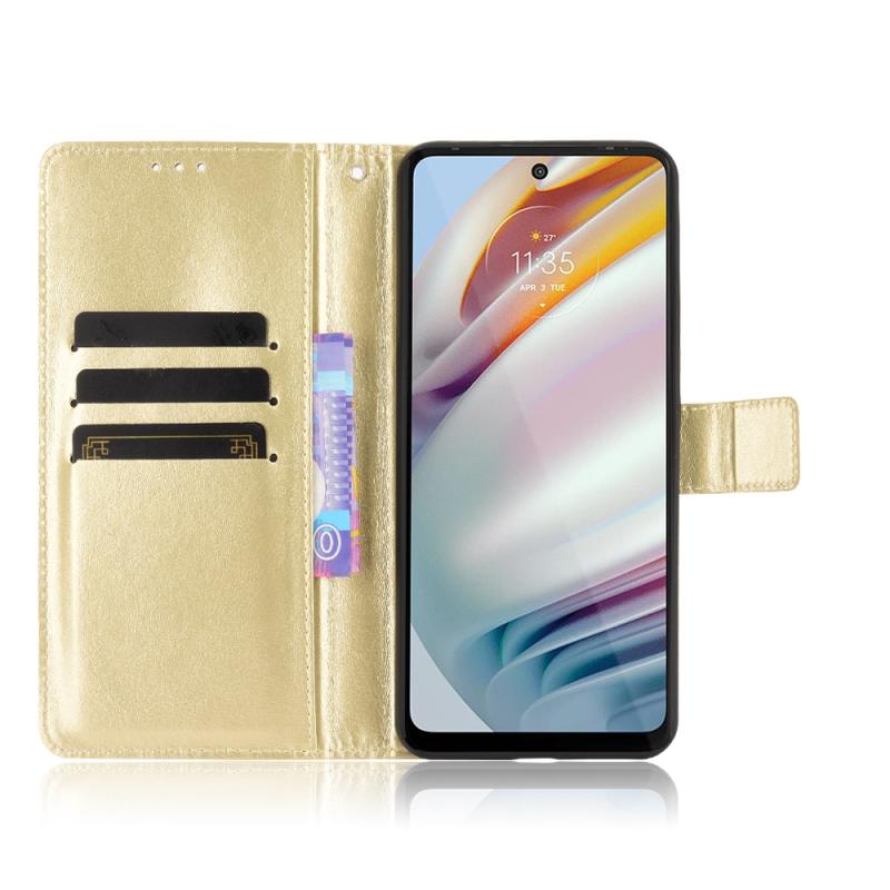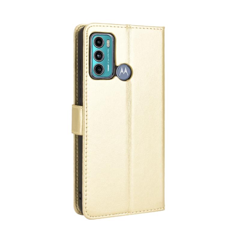 Θήκη δέρματος οριζόντιας αναδίπλωσης με υφή Crazy Horse για Motorola Moto G40 Fusion / Moto G60 με βάση & υποδοχές καρτών & κορδόνι (Χρυσό)