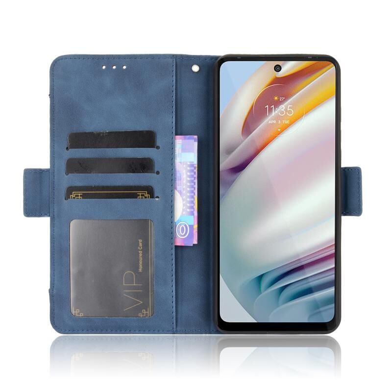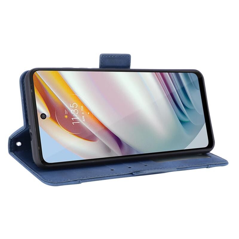 Θήκη δέρματος οριζόντιας αναδίπλωσης με υφή μοσχαριού για Motorola Moto G40 Fusion / Moto G60 με βάση στήριξης & υποδοχές καρτών & κορνίζα φωτογραφιών (Καφέ)