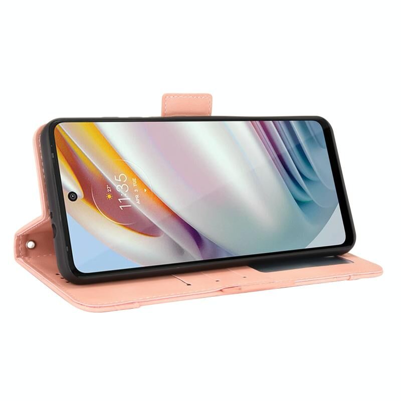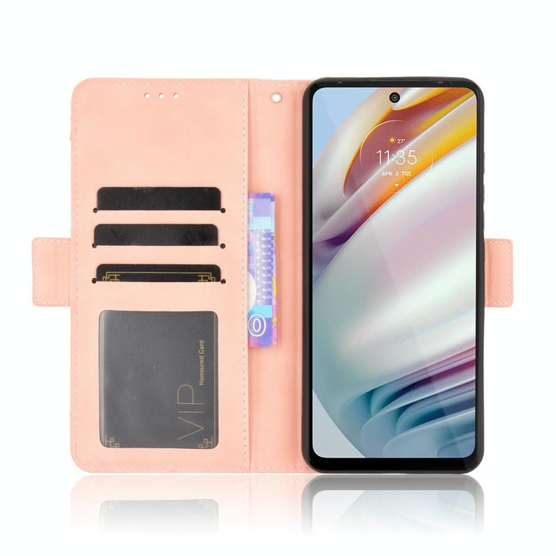 Θήκη δέρματος οριζόντιας αναδίπλωσης με υφή μοσχαριού για Motorola Moto G40 Fusion / Moto G60 με βάση στήριξης & υποδοχές καρτών & κορνίζα φωτογραφιών (Καφέ)