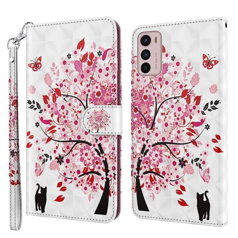 Θήκη κινητού τηλεφώνου για Motorola Moto G42, από TPU + Δερματίνη PU με σχέδιο 3D (Γάτα κάτω από το δέντρο)