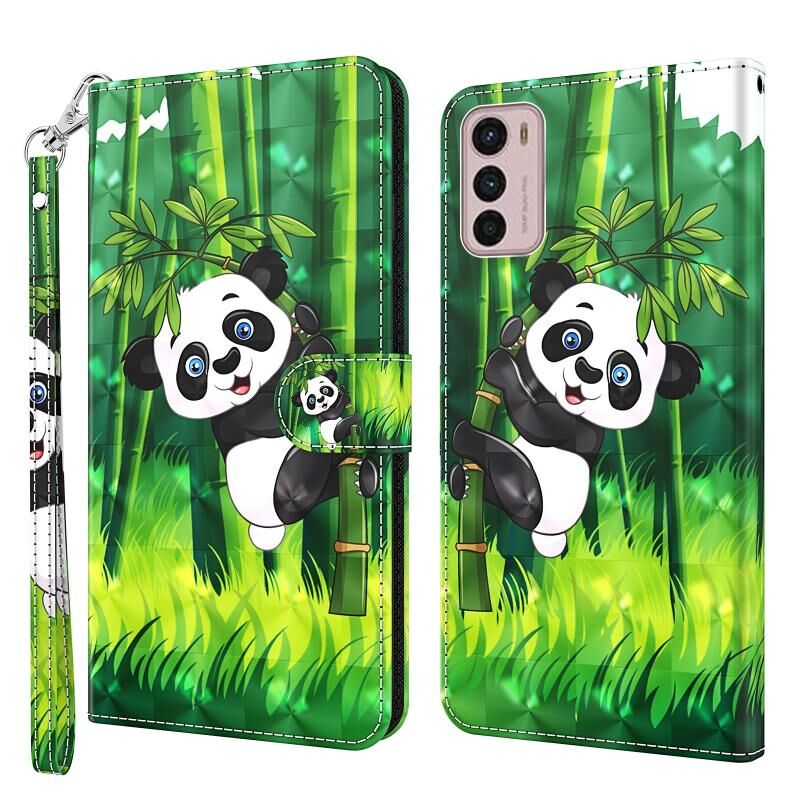 Θήκη κινητού τηλεφώνου για Motorola Moto G42, TPU + Δερμάτινη PU με σχέδιο 3D (Αναρριχώμενο Panda σε Μπαμπού)