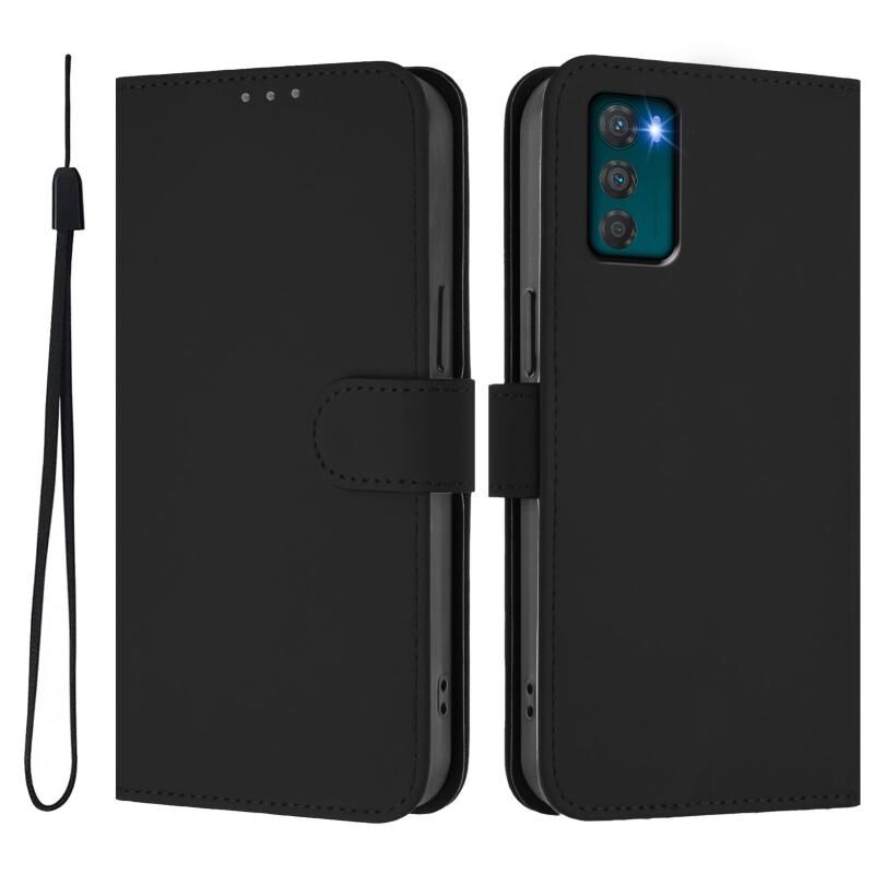 Για Motorola Moto G42 4G Skin Feel Solid Color Δερμάτινη θήκη τηλεφώνου με κορδόνι (Μαύρο)
