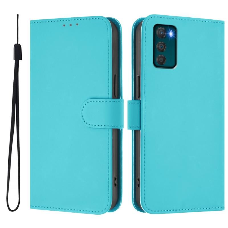 Για Motorola Moto G42 4G Skin Feel Solid Color Δερμάτινη θήκη τηλεφώνου με κορδόνι (Lake Blue)
