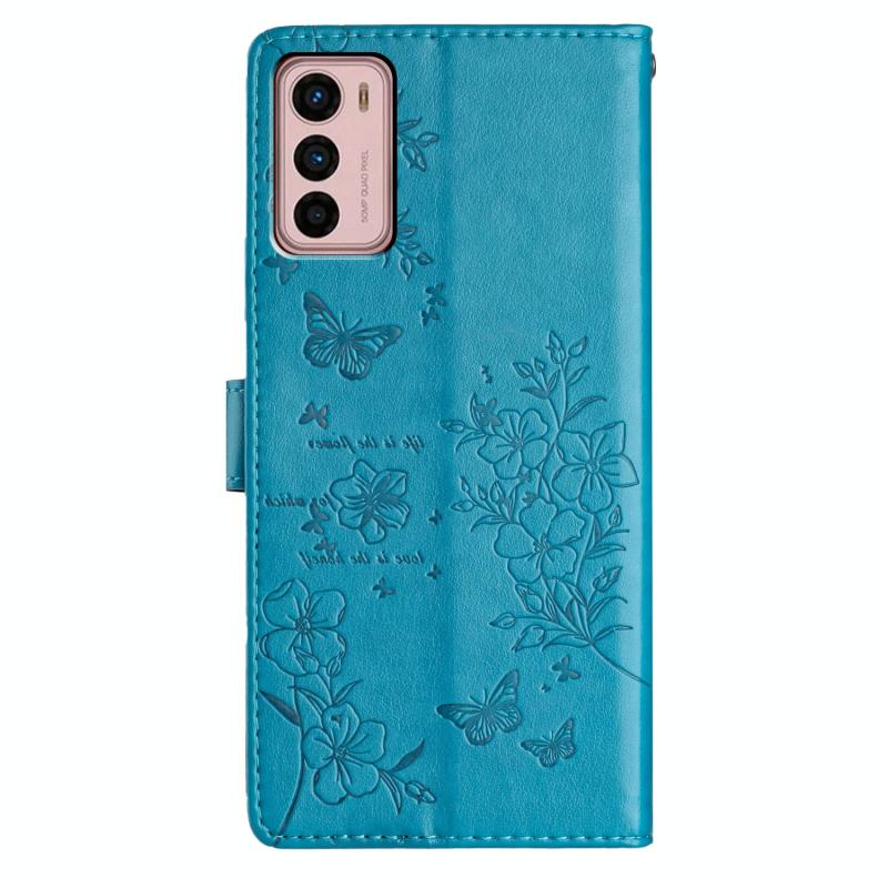 Θήκη τηλεφώνου δερμάτινη για Motorola Moto G42 με σχέδια πεταλούδες και λουλούδια (Χρυσό)