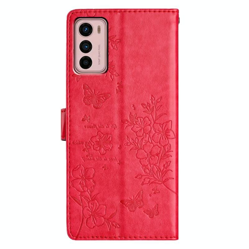 Θήκη τηλεφώνου δερμάτινη για Motorola Moto G42 με σχέδια πεταλούδες και λουλούδια (Χρυσό)