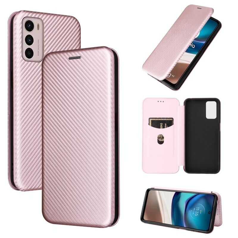 For Motorola Moto G42 Carbon Fiber Texture Leather Phone Case(Rose Gold)
