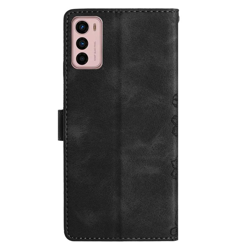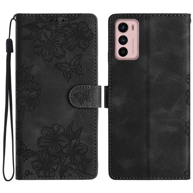 For Motorola Moto G42 Cherry Blossom Butterfly Skin Feel Embossed PU Phone Case(Black)