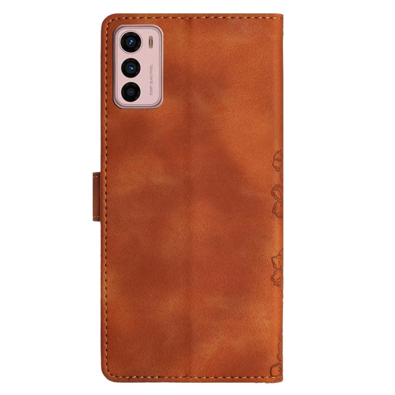 For Motorola Moto G42 Cherry Blossom Butterfly Skin Feel Embossed PU Phone Case(Brown)