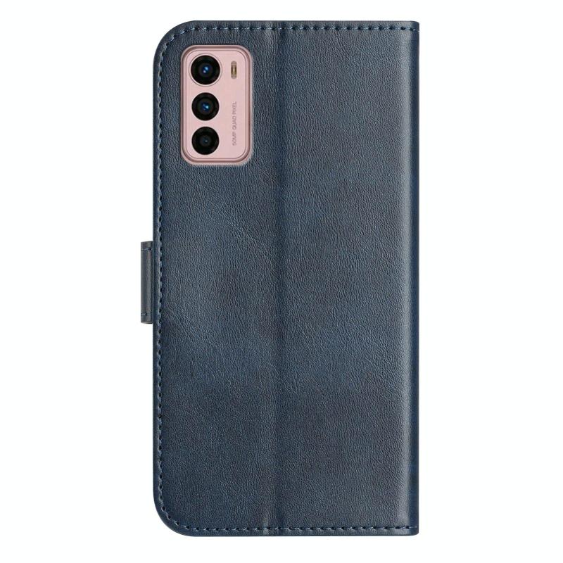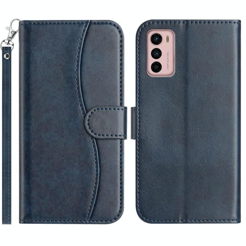 For Motorola Moto G42 Dual-Folded S-shape Leather Phone Case(Navy Blue)
