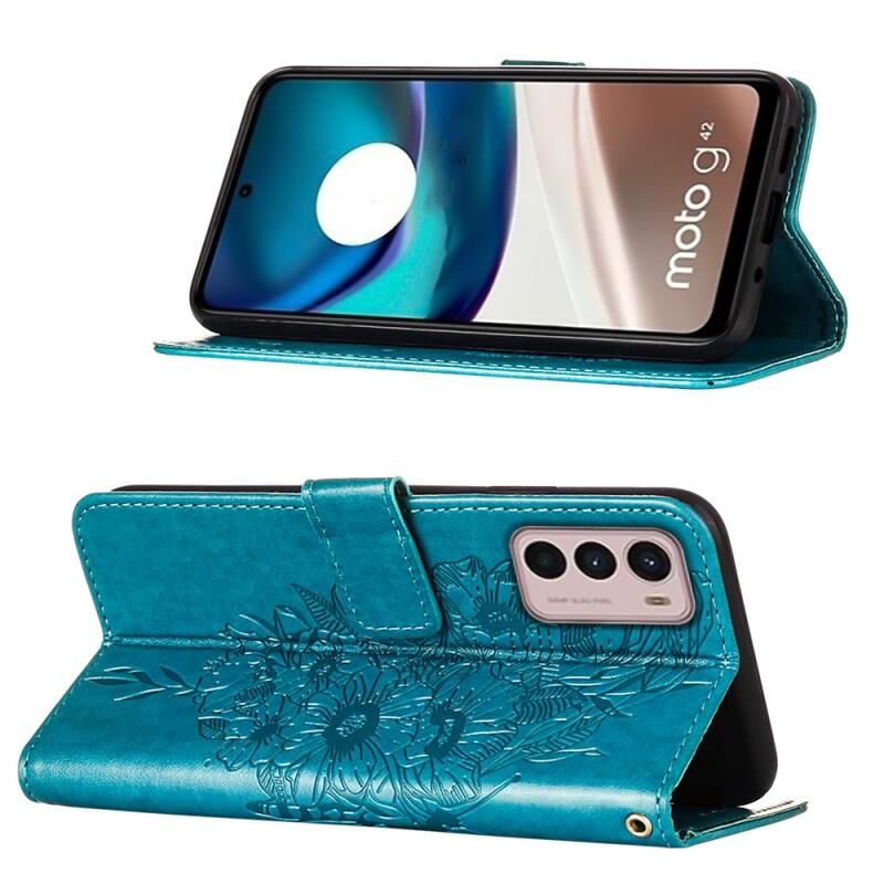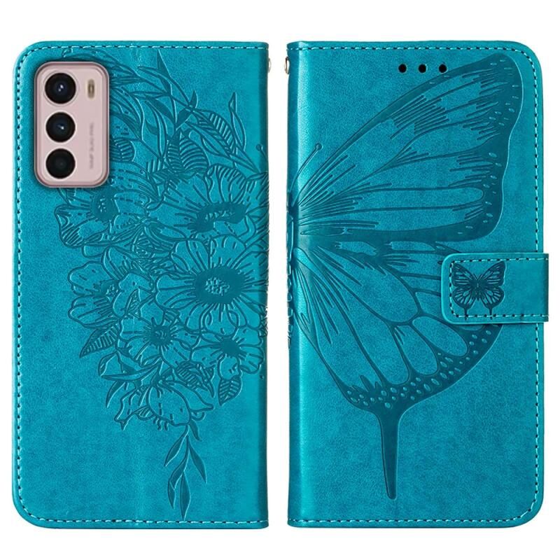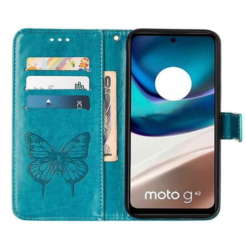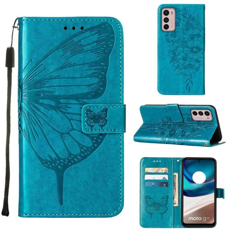 Για Motorola Moto G42 ανάγλυφη πεταλούδα Flip δερμάτινη θήκη τηλεφώνου (μπλε)