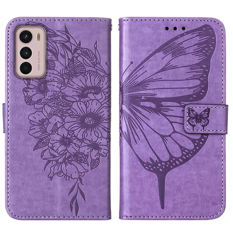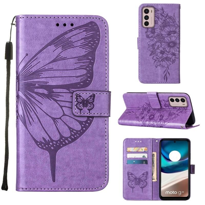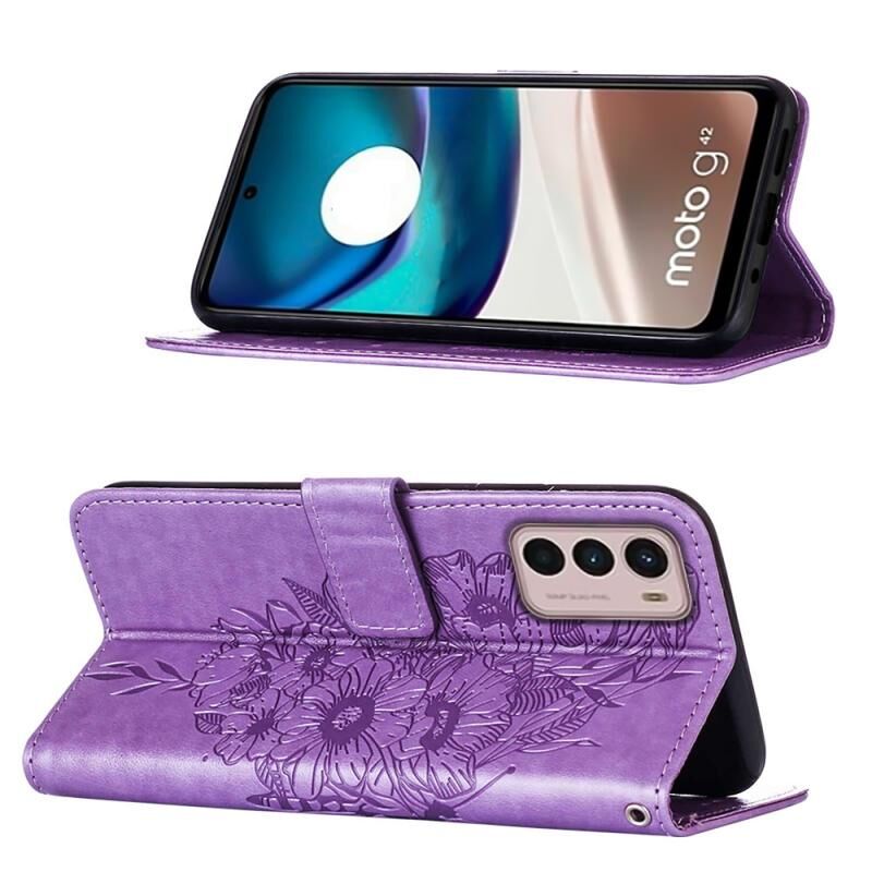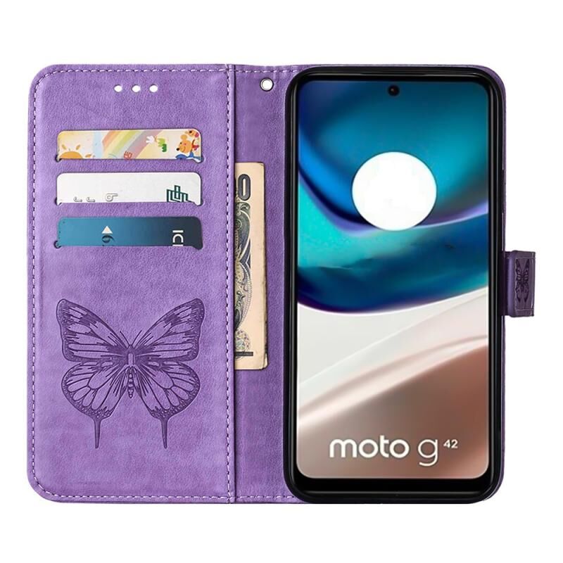 Για Motorola Moto G42 ανάγλυφη πεταλούδα Flip δερμάτινη θήκη τηλεφώνου (μωβ)