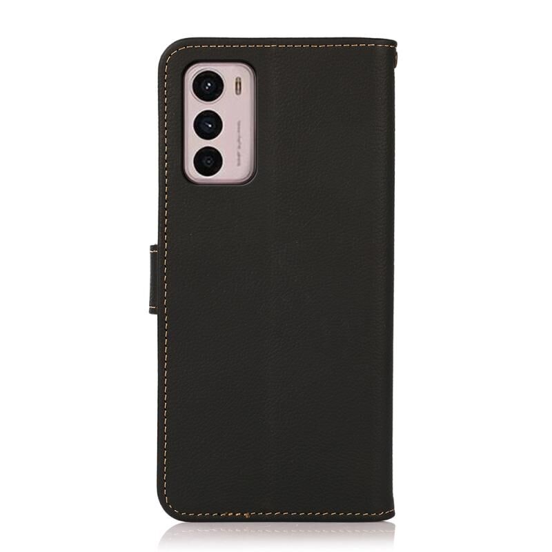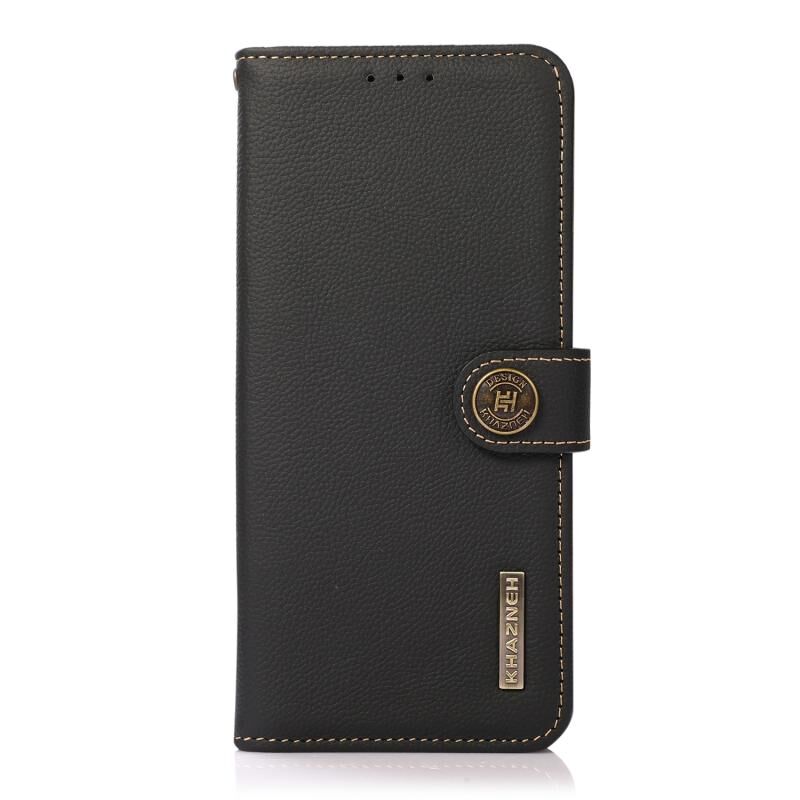 Θήκη κινητού τηλεφώνου Motorola Moto G42 KHAZNEH Custer από γνήσιο δέρμα με προστασία RFID (Μαύρο)