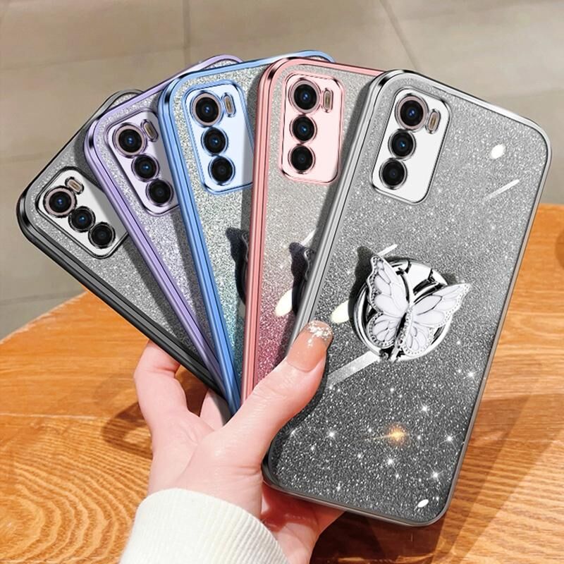 Για Motorola Moto G42 Επιμεταλλωμένο διαβάθμιση Glitter πεταλούδα κάτοχος TPU τηλέφωνο υπόθεση (ροζ)