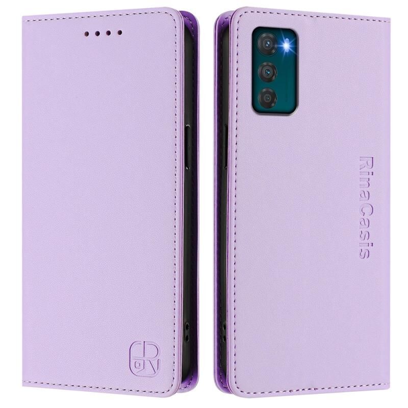 Θήκη τηλεφώνου δερμάτινη με μαγνητική απορρόφηση και διπλή πτυχή για Motorola Moto G42 RC01 (Ανοιχτό Μωβ)