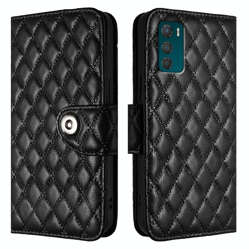 Για Motorola Moto G42 Rhombic Texture Flip δερμάτινη θήκη τηλεφώνου με κορδόνι (Μαύρο)