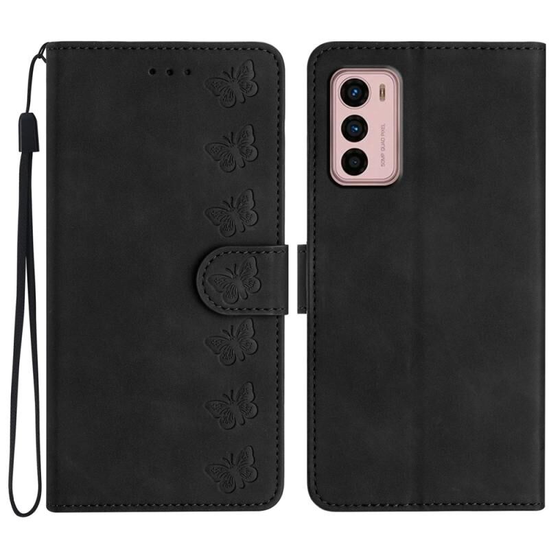 Θήκη τηλεφώνου από δέρμα με ανάγλυφο σχέδιο "Επτά Πεταλούδες" για Motorola Moto G42 (Καφέ)