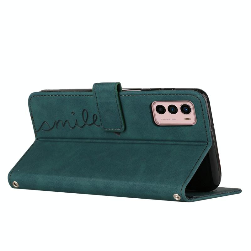Θήκη κινητού τηλεφώνου από δέρμα με σχέδιο καρδιάς και αίσθηση δέρματος για Motorola Moto G42 (Πράσινο)