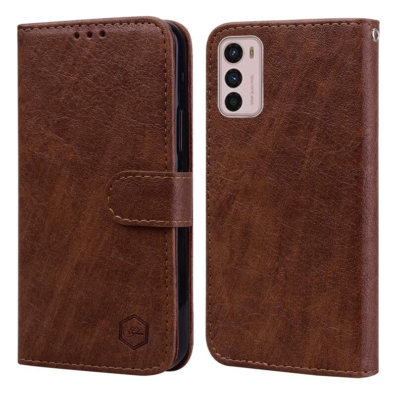 Θήκη κινητού τηλεφώνου για Motorola Moto G42 με υφή δέρματος λαδιού, PU + TPU (Καφέ)